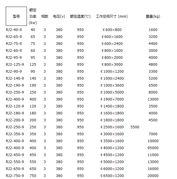 大型井式退火爐尺寸規格:(盡供參考,具體有用戶提供尺寸)