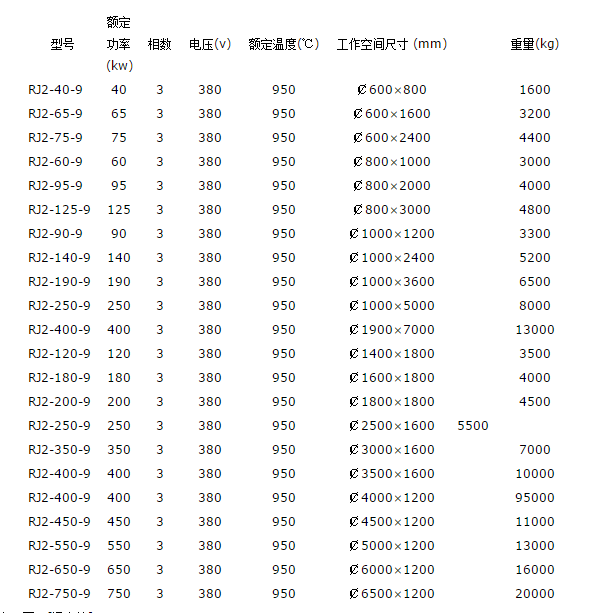 大型井式退火爐尺寸規格:(盡供參考,具體有用戶提供尺寸)